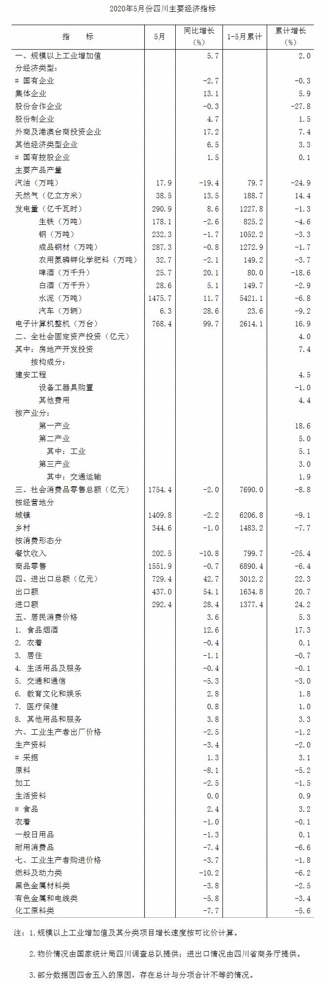 四川新闻网成都6月16日讯(记者 戴璐岭)四川新闻网记者16日从四川省统计局获悉,2020年1-5月四川省国民经济主要指标数据发布。