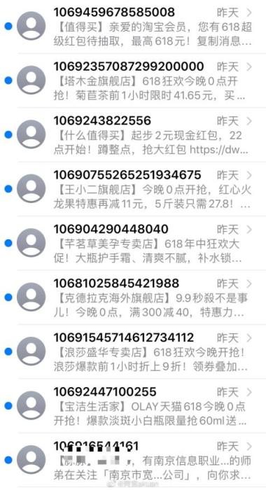 有网友表示,部分店铺以优惠券为诱饵,引导消费者加入其店铺会员,收集用户手机号精准推送节日噱头的广告短信。近两个月以来,“五一”“儿童节”“618”,三次促销轮番精准“轰炸”,让人防不胜防。消费者即使不想消费,每月也会受到至少一次的各种广告短信骚扰。