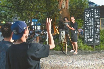 8月1日傍晚的成都玉林西路,小酒馆里的年轻人已经有些微醺,玉林烤兔、串串的香气慢慢四散开来,每个来到这里的人都在寻找属于自己的成都慢生活。“别动,一定要坚挺4秒钟!”摄影师唐华是新文创大军的一员,站在芳草文创街区用大画幅相机拍摄湿版照片的他一边大声提醒镜头前的被拍者“别动”,一边按下快门线,高亮取景框的背后满是热气腾腾的市井味。