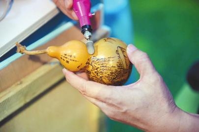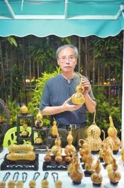7月18日,重庆市级非遗项目——葫芦烙画的传承人在天府文创大集市上展示自己的作品。