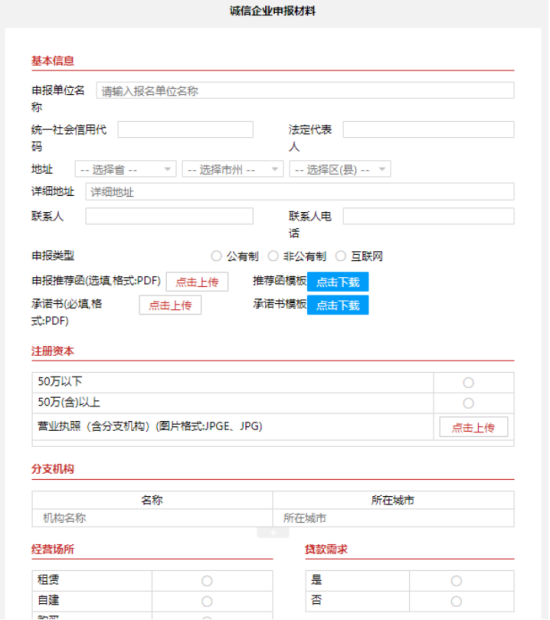 填写申请企业或企业家的各项基本信息(下图展示企业申报信息为例),并上传企业及企业家相关有效文件、证件。扫描件需规整、清晰、无遮挡、无污渍,有效信息务必能够直观显示。