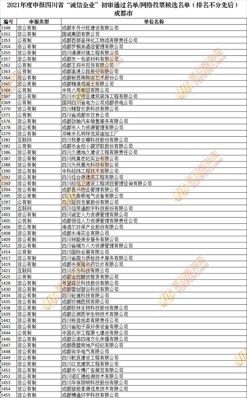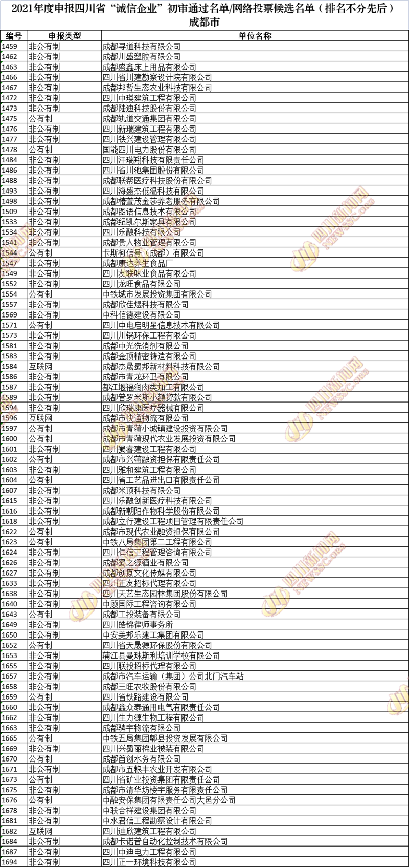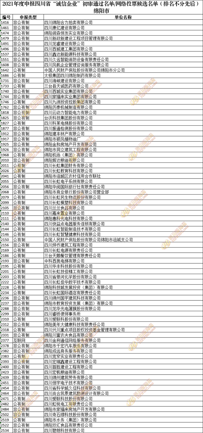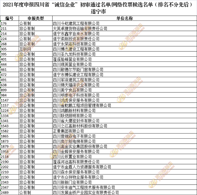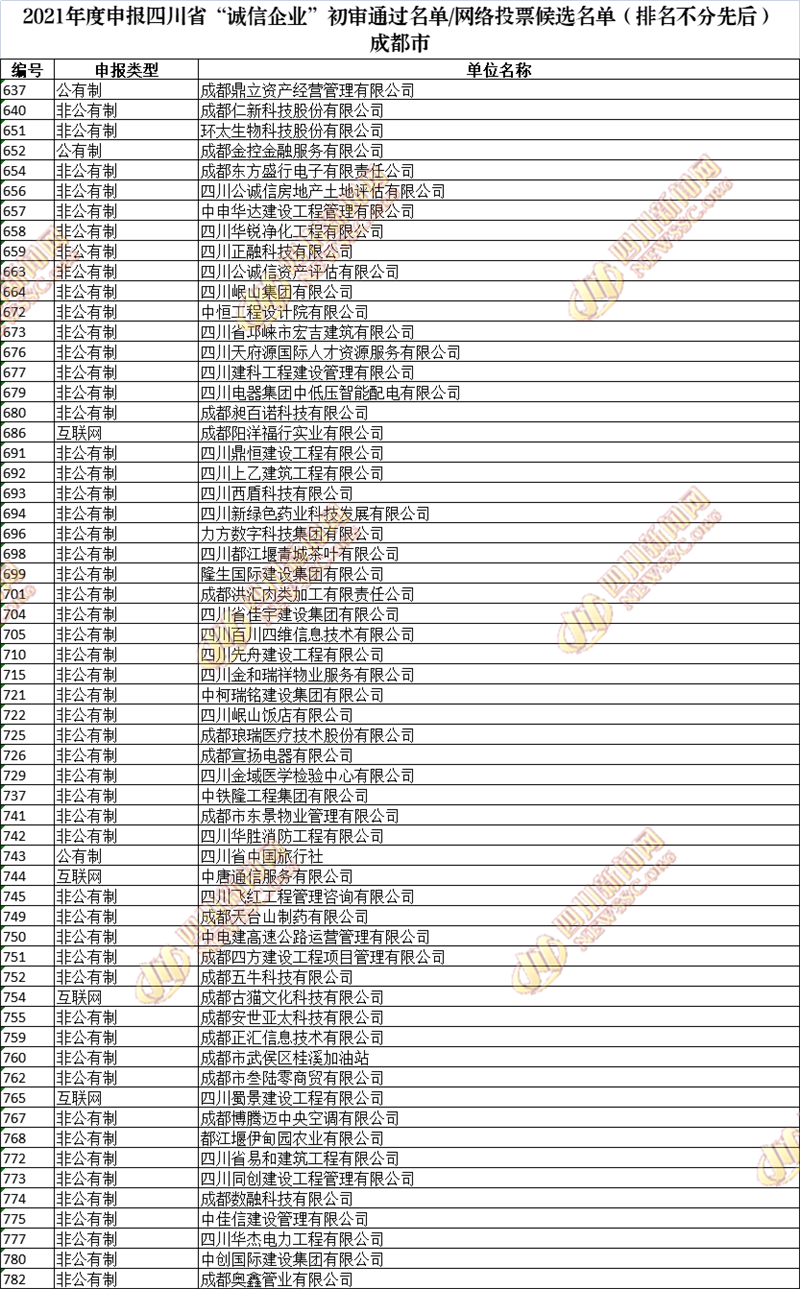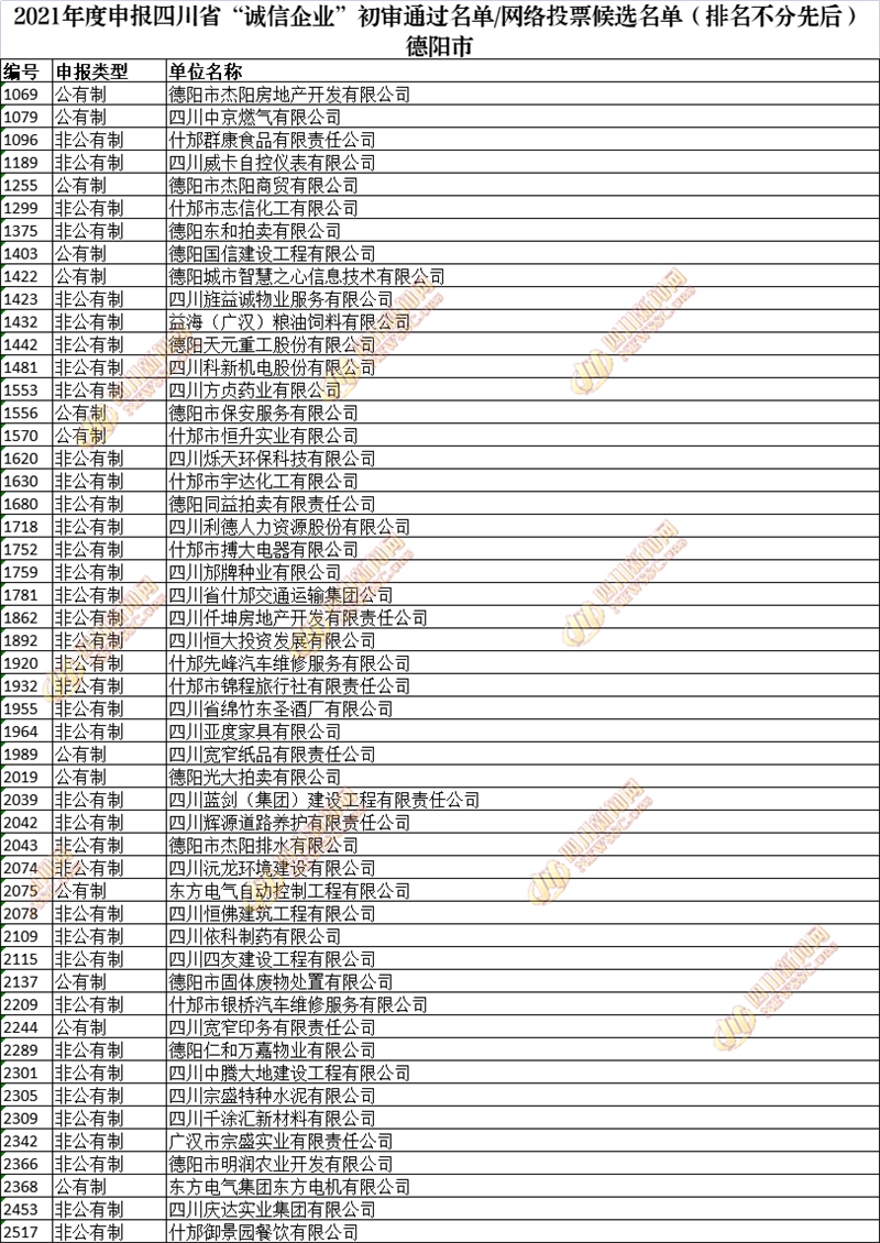 “诚信企业”初审通过名单/网络投票候选名单公布如下: