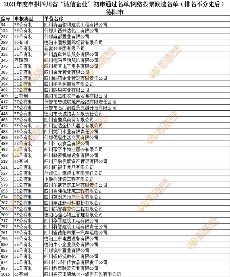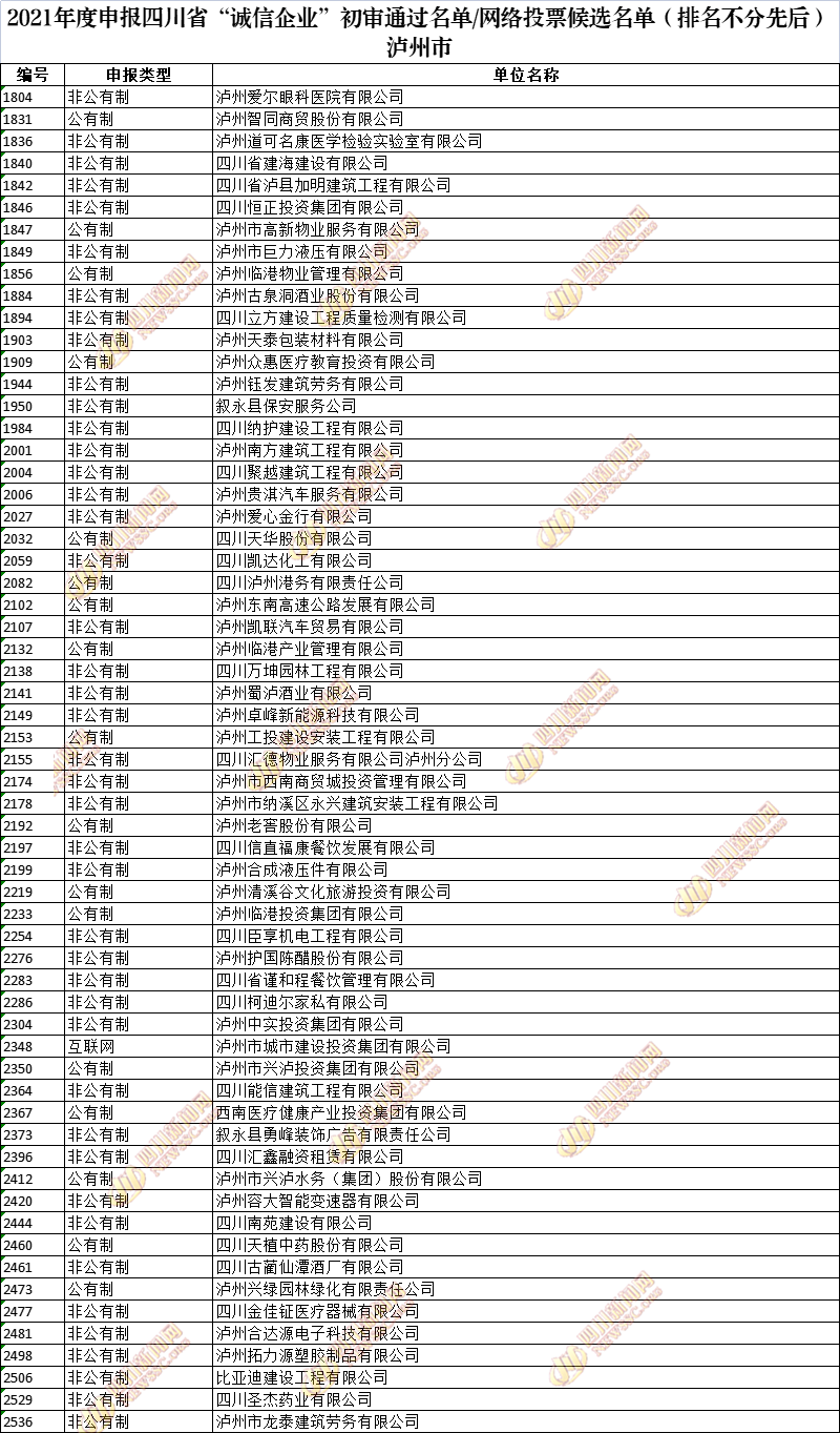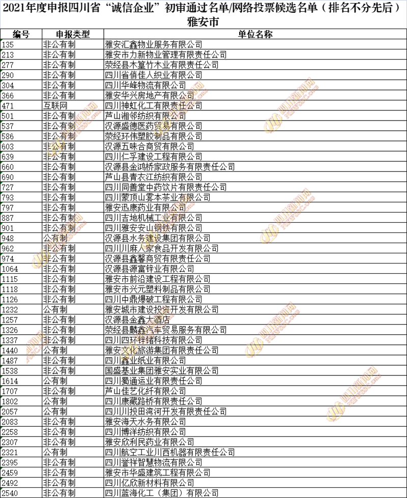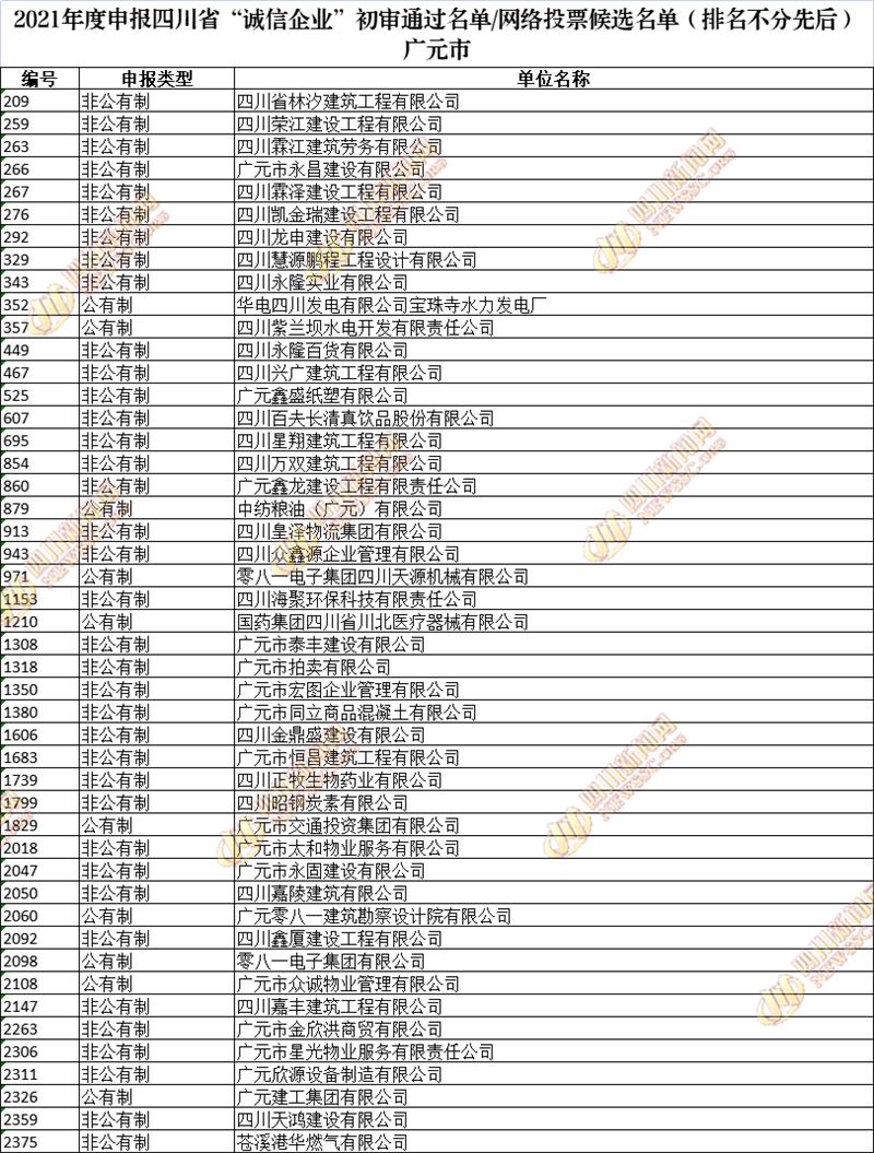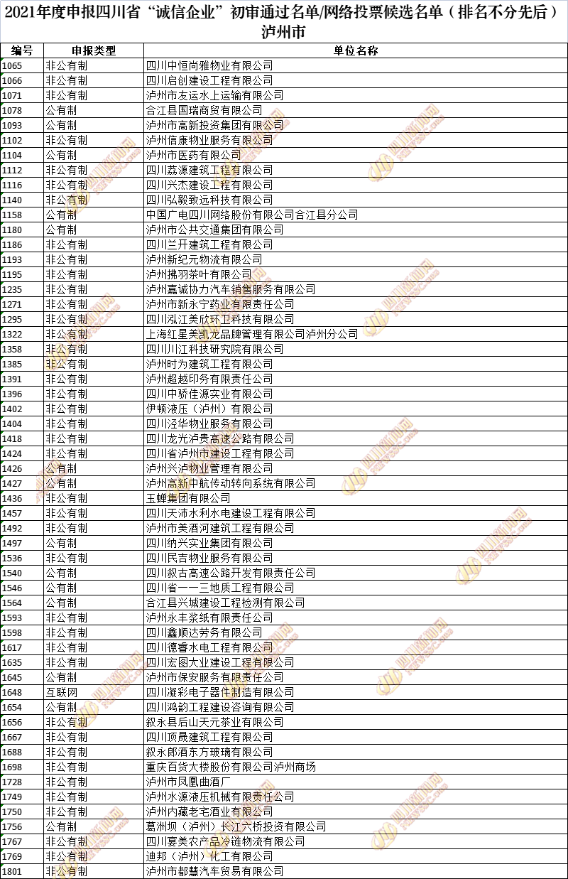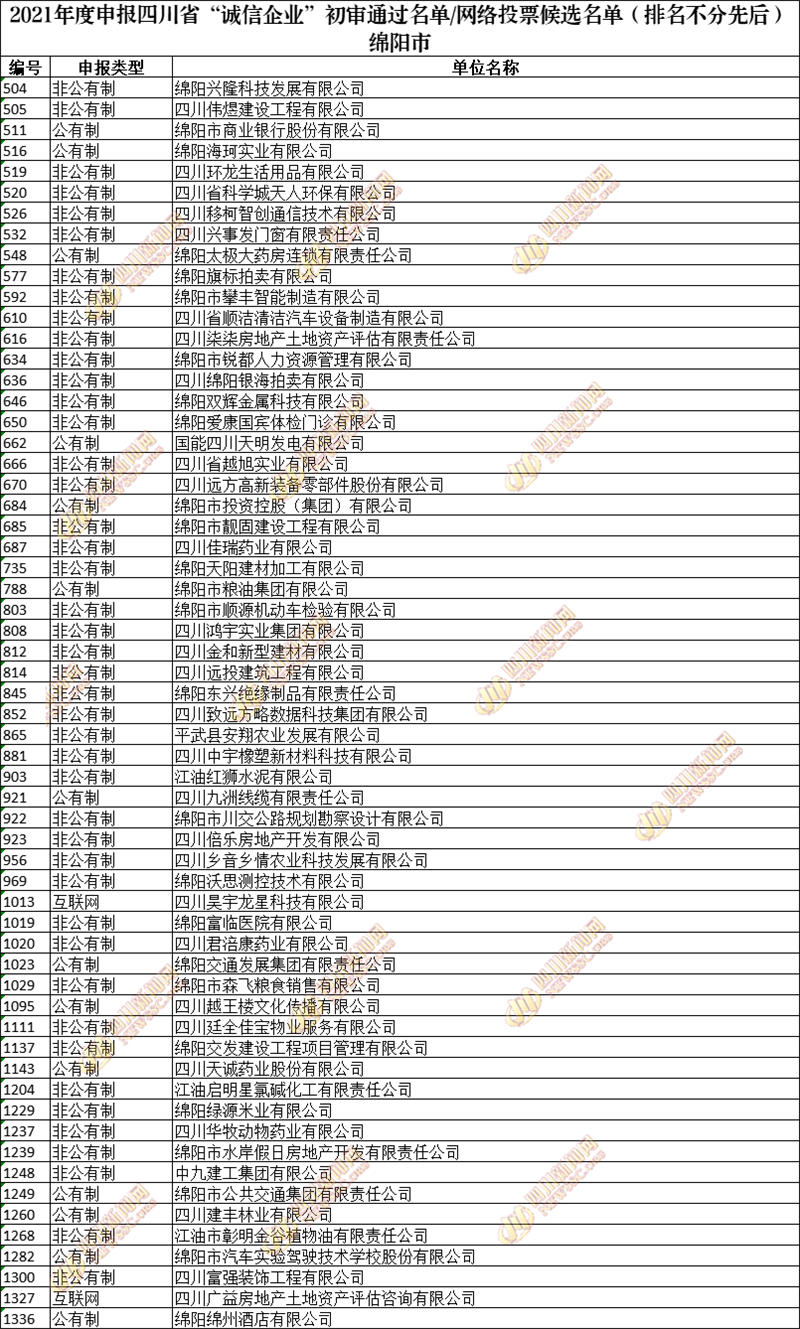 “诚信企业”初审通过名单/网络投票候选名单公布如下: