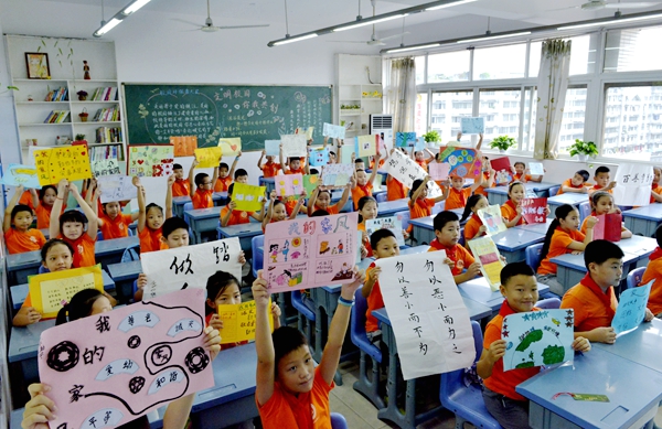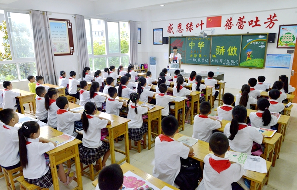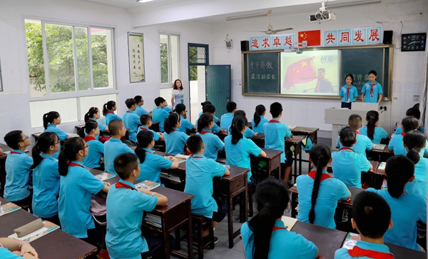 9月1日,泸州江南小学四年级四班以《中华骄傲——敬廉崇洁乐淘淘》为主题的开学第一课 (江阳区委宣传部供图 曹卫兵 摄)