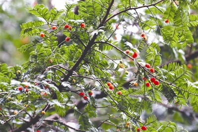 经现场查看和询问,很快排除是红豆杉的可能。“红豆杉的树叶是排列成两列,条形,微弯或较直,而这棵树的树叶是片状。”李甲说。通过现场采集的树叶图像和查询资料,这棵树木很有可能是“红豆树”。红豆树与红豆杉的树叶大不相同。此外,树木的高度在20米-30米,胸径可达1米;树皮灰绿色,平滑等,结合其生长环境,符合“红豆树”的特征。