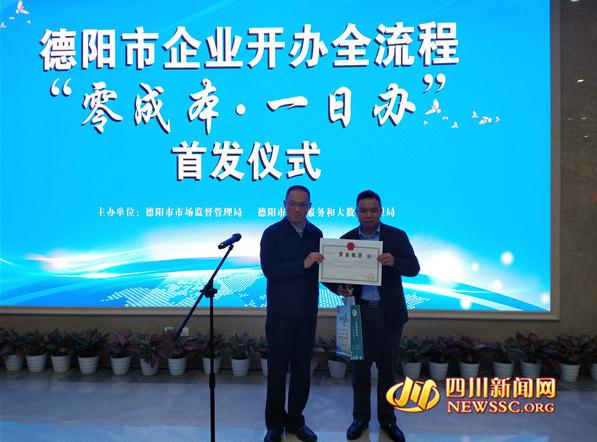 “只需要跑一次路,当天就能拿到办企业的证件,大大节约了我们的时间。”首发仪式上,一位今天办理证件的企业负责人在德阳市政务服务中心从德阳市市场监管局局长杨方清手里接过了“零成本·一日办”大礼包,里面包括营业执照等各种办企业需要的证件。他对政府部门此项举措感到特别暖心,对德阳的营商环境充满期待。