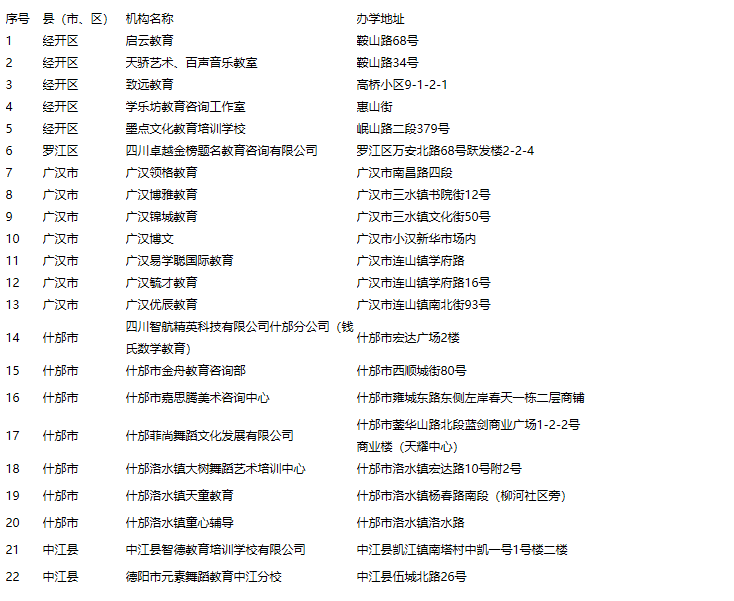 德阳市校外培训机构第七批黑名单(22所)