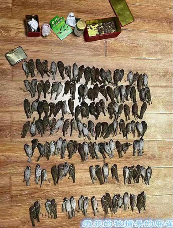 当日12时许,民警将折返回来拾取被捕杀麻雀的男子当场抓获。