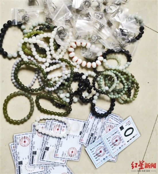 那么,既然竞拍的是“文玩”,是否可以提取实物呢?任杰介绍,平台商也准备了相应实物,但起拍价动辄数千元的“文玩”,如“玉石手链”“玉石戒指”等,其实仅仅只是些价值一两元、配有所谓“鉴定证书”的工艺品。